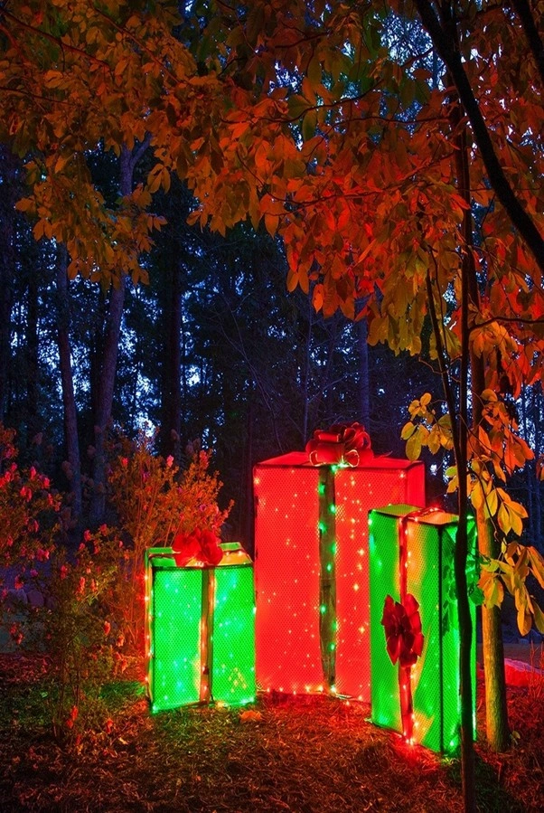 Glittering gift boxes bring an enchanting touch to Christmas decorations, light up your outdoor or indoor area with festive ambiance. The decorative boxes, covered in vibrant colors such as red, gold, or silver, have incorporated in them built-in LED lights that emit a soft, warm light. Strategically positioned on your porch, path, or near the Christmas tree, they create a beguiling visual display that captures attention and distributes holiday cheer. Some of the radiant gift boxes contain transparent materials through which light can diffuse softly and illuminate the surrounding space, while others are decorated with shimmering bows and ribbons to create a festive atmosphere. These all-purpose decorations can be stacked to create eye-catching displays or sprinkled singly for a playful effect. Long-lasting and sometimes weatherproof, radiant gift boxes infuse warmth, joy, and sophistication into your festive celebration, making them a necessity for an unforgettable festive atmosphere.
