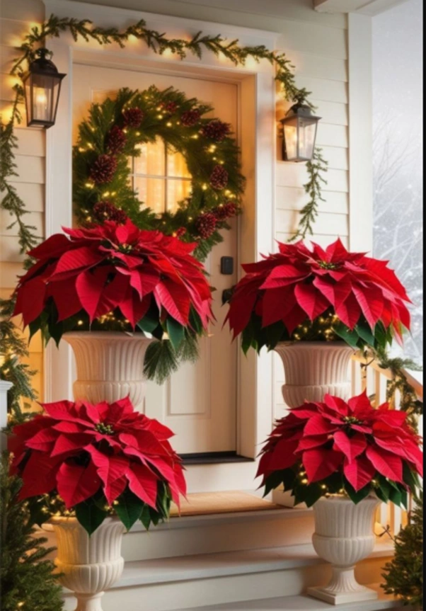 Poinsettia Elegance infuses traditional beauty and sophistication into Christmas decor. With its signature red and green foliage of the poinsettia plant, this design introduces a deep splash of color to a room. Place lush poinsettia bouquets as dining table, mantel, or porch vignette centerpieces to call up vintage Christmas elegance. Combine these flower arrangements with gold accents, including ribbons, candlesticks, or ornaments, for added sophistication. Synthetic poinsettias are a favorite when it comes to longevity, so that you can enjoy their bright colors all year round without wilting. Mixing these with evergreen garlands, fairy lights, and subtle glitter gives your home that warm and gracious festive feel. Poinsettia Elegance is the perfect blend of nature’s holiday abundance and upscale decor, inviting your festivities to be both warm and visually appealing.