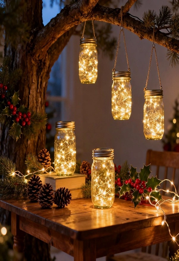 Twinkling Mason Jar Lights add a charming, rustic glow to your holiday porch style. The sweet jars, topped with sparkling fairy lights, produce a gentle, inviting light that turns any outdoors area into a cozy winter haven. Suspend them from porch rails, branch limbs, or shepherd hooks to create a visual pillar of sparkle and height, and set a few on tables or stairs to infuse the cozy below. The soft shine from every jar complimented garlands, wreaths, and other festive trimmings tastefully, with simplicity and enchantment. Used in clear glass jars or frosted finishes, the light shines dazzlingly off the surfaces and creates a dreamy, festive atmosphere. Ideal for Christmas nights or winter celebrations, mason jar lights with lighting evoke the essence of handcrafted charm and timelessness, spreading peaceful, heartwarming illumination throughout the season.